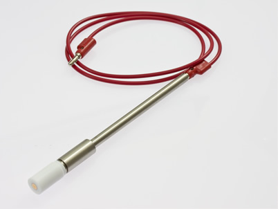 This shaft allowsan RDE tip (E5 Fixed-Diskor E5 ChangeDisk tips only) to be used as anon-rotating, stationary workingelectrode. The upper end of this shafthasa banana jack which can accept a standard banana cable, or alternatively,abanana plug (included) can be installed in the banana jack, and this plugcanaccept an alligator clip.