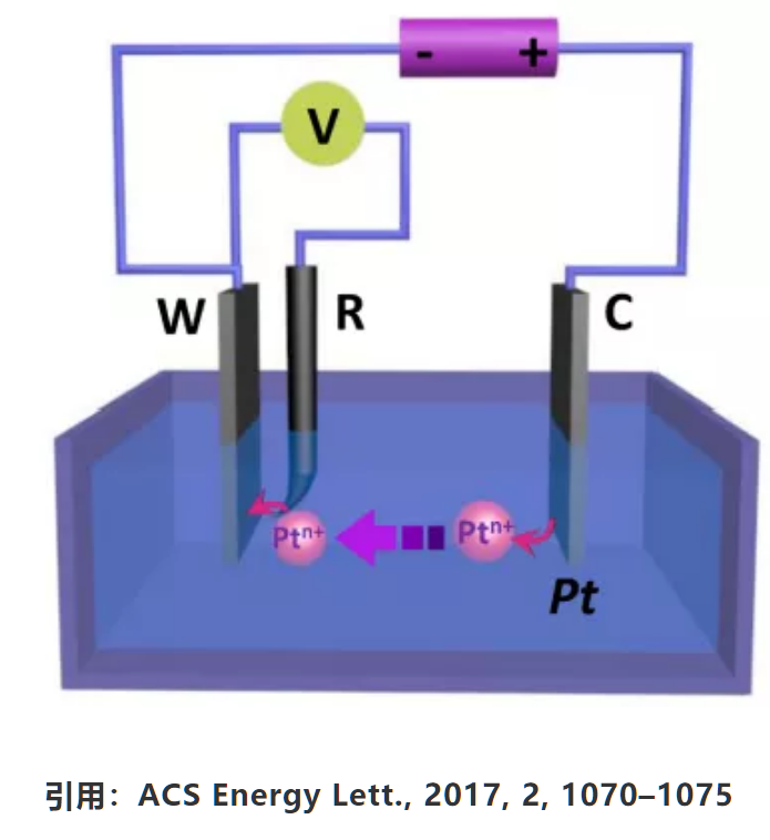 一直以來,由工作電極(WE)、參比電極(RE)和對電極(CE)組成的三電極體系是研究電催化重要工具。很長一段時間以來,鉑(Pt)因其化學(xué)惰性而被廣泛作為對電極。然而,近年來發(fā)現(xiàn),在氧化條件和某些電解質(zhì)條件下,Pt易發(fā)生溶解。而這些微量的Pt離子在還原電位下可在工作電極表面發(fā)生Pt沉積。由于Pt在許多反應(yīng)中具有優(yōu)異的催化活性,這種沉積現(xiàn)象使得實(shí)驗所測數(shù)據(jù)存在問題。因此,在電催化研究中越來越多地使用C對電極,如石墨對電極取代Pt對電極。