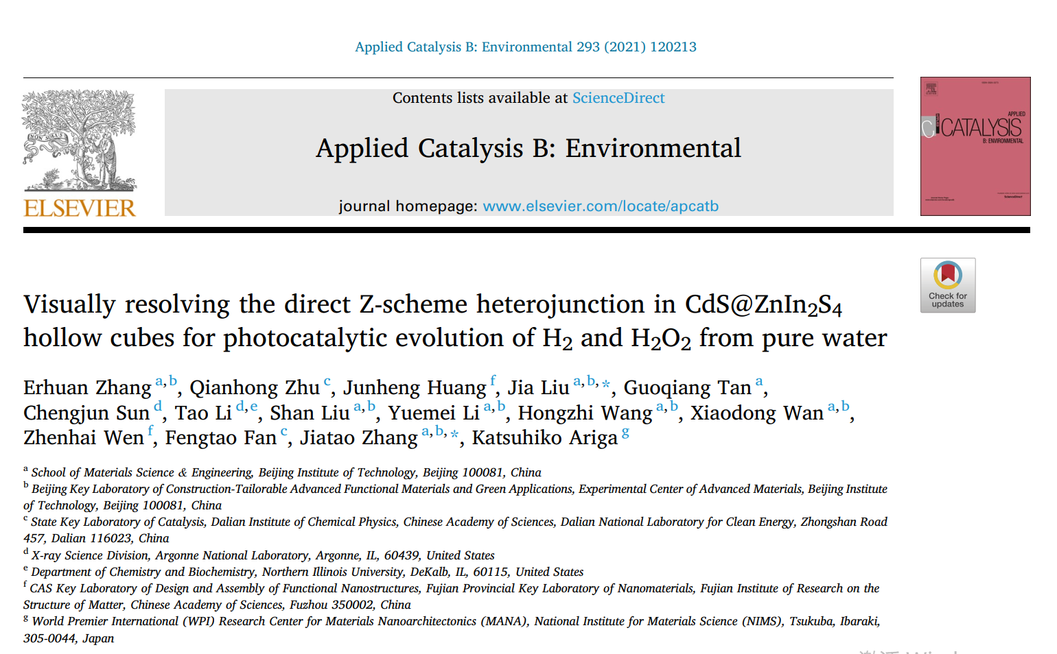 CdS@ZnIn2S4直接Z型結構用于光催化純水分解H2和H2O2研究 (2021年PHY香港理化論文獎勵計劃入選論文)