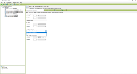 美國Pine WD100電化學(xué)工作站配套的Aftermath軟件采用獨(dú)特的算法,縮短EIS測試的時間,讓原位EIS接近阻抗測試三原則(穩(wěn)定性,線性和因果性)。其次通過sequence編程功能將電池充放電過程與阻抗測試編寫在同一個sequence里面運(yùn)行,實(shí)時測試不同荷電態(tài)(SoC)下電池的交流阻抗信息。