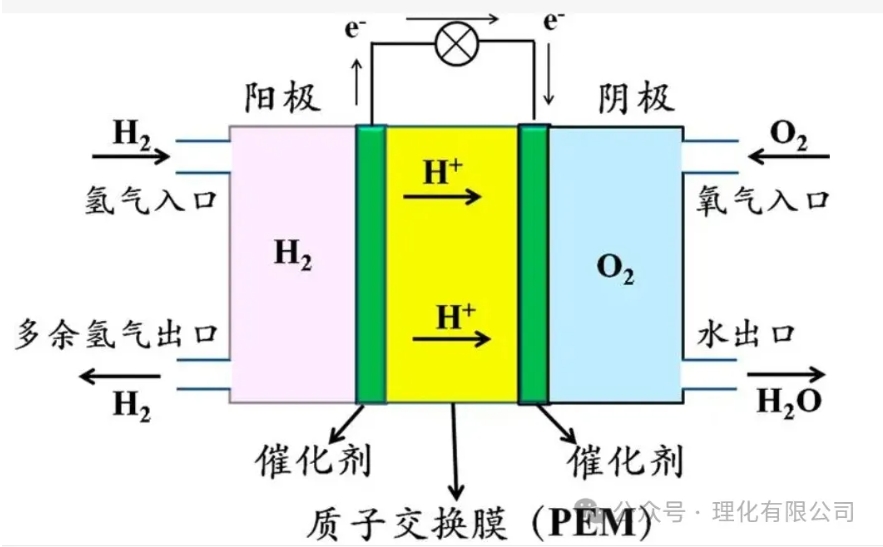 燃料電池是氫氣與氧氣發(fā)生電化學(xué)反應(yīng)來實現(xiàn)發(fā)電的,氫氣作為“陽極”,氧氣作為“陰極”。