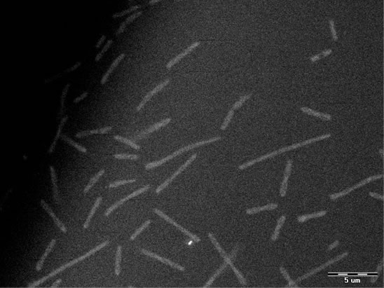 Fully hydrated Escherichia coli strainDH5-alpha bacteria were attached to the QX- capsule membrane, fixed with 4%paraformaldehyde for 10 min and imaged.