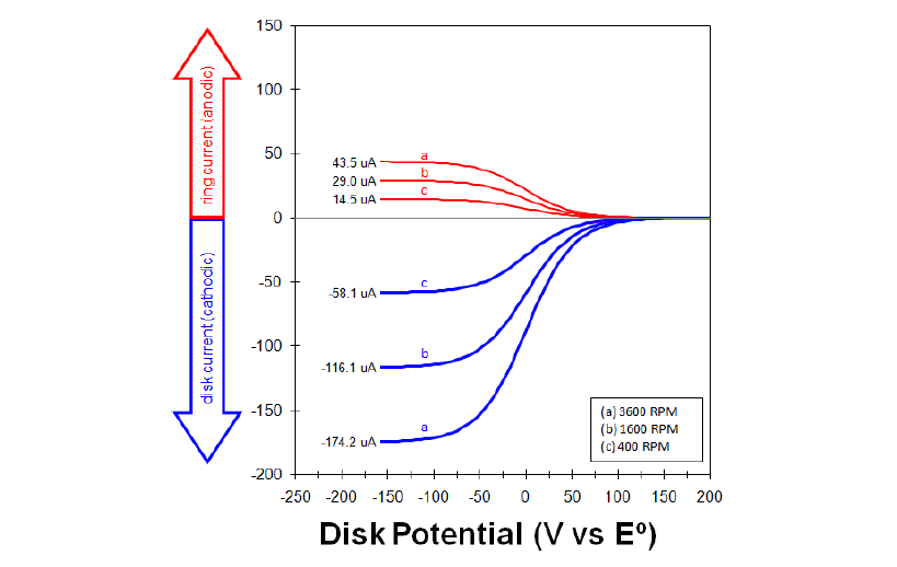 不同轉(zhuǎn)速下的RRDE測試圖