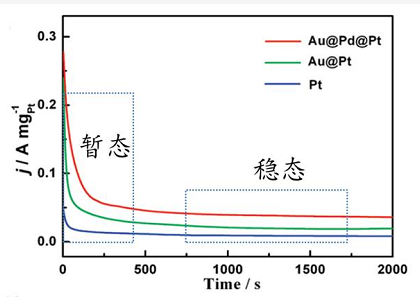 法拉第過程的電流密度隨電位的變化大小受很多因素的影響,往往與反應物或產物及電極表面的吸附物質有關。當法拉第電流密度在一定的電位下達到穩(wěn)定數(shù)值時,緊靠電極表面的溶液層中與電極反應有關的物質的濃度與電極表面狀態(tài)變量也應該保持為一定的穩(wěn)定值,不隨時間改變,這時進行的電化學測量稱為穩(wěn)態(tài)測量。而在法拉第過程尚未達到穩(wěn)定態(tài)之前的電化學測量則稱為暫態(tài)測量。