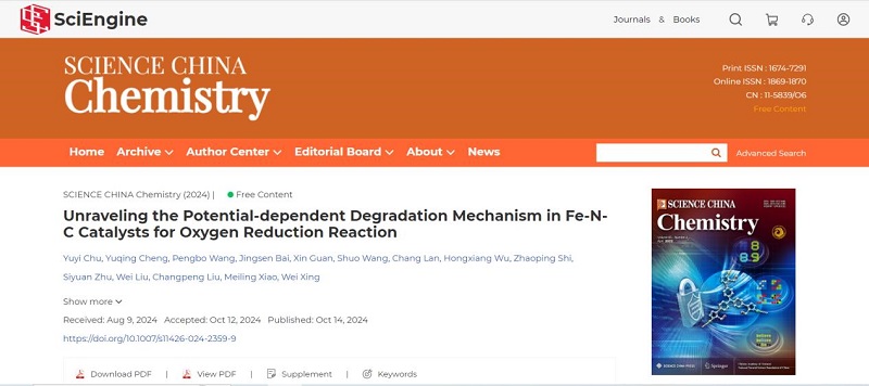 中科院長春應化所:揭示用于氧還原反應的 Fe-N-C 催化劑隨電位變化的降解機制